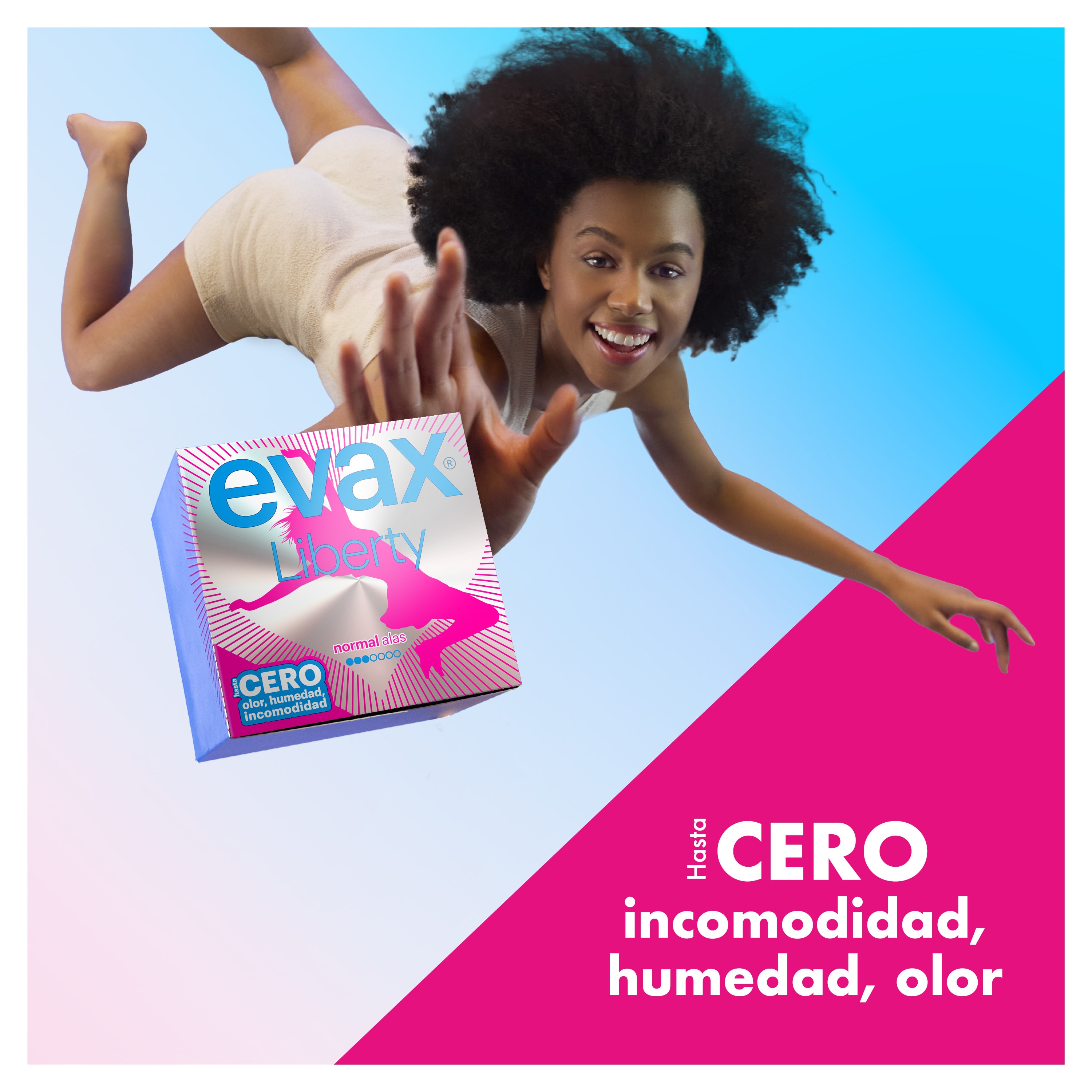 ¡Evax Liberty es otro mundo! Te sentirás tan limpia que ni siquiera notarás que la llevas. Evax Liberty está fabricada íntegramente con Flexicel, que se adapta perfectamente a tu cuerpo, absorbiendo y alejando la humedad de la piel. Además, tienen una delicada fragancia que neutraliza los olores y garantiza el frescor. Disfruta de una compresa única con las compresas Evax Liberty.